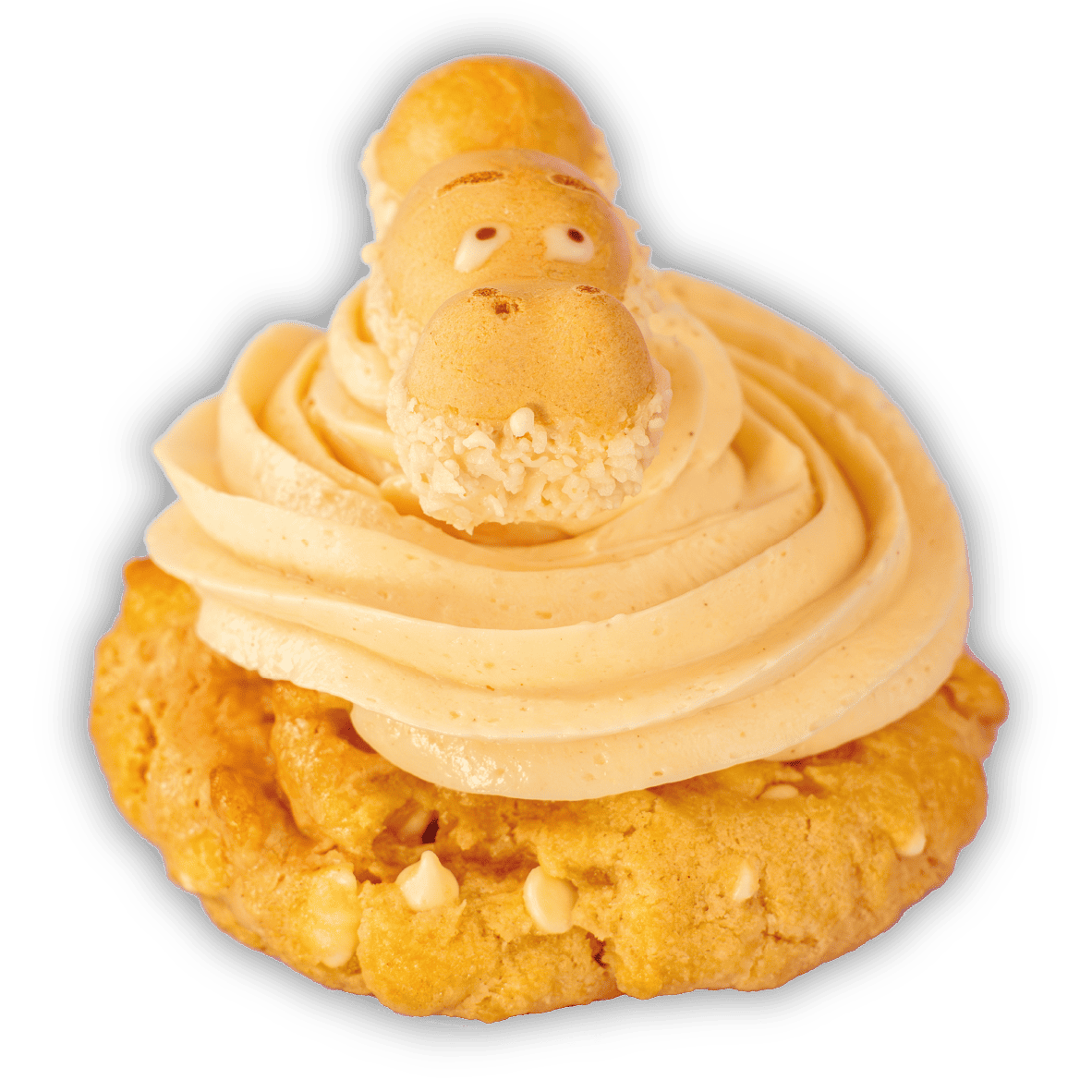 Galleta, crema de Happy Hippo y un hipopótamo que te mira.