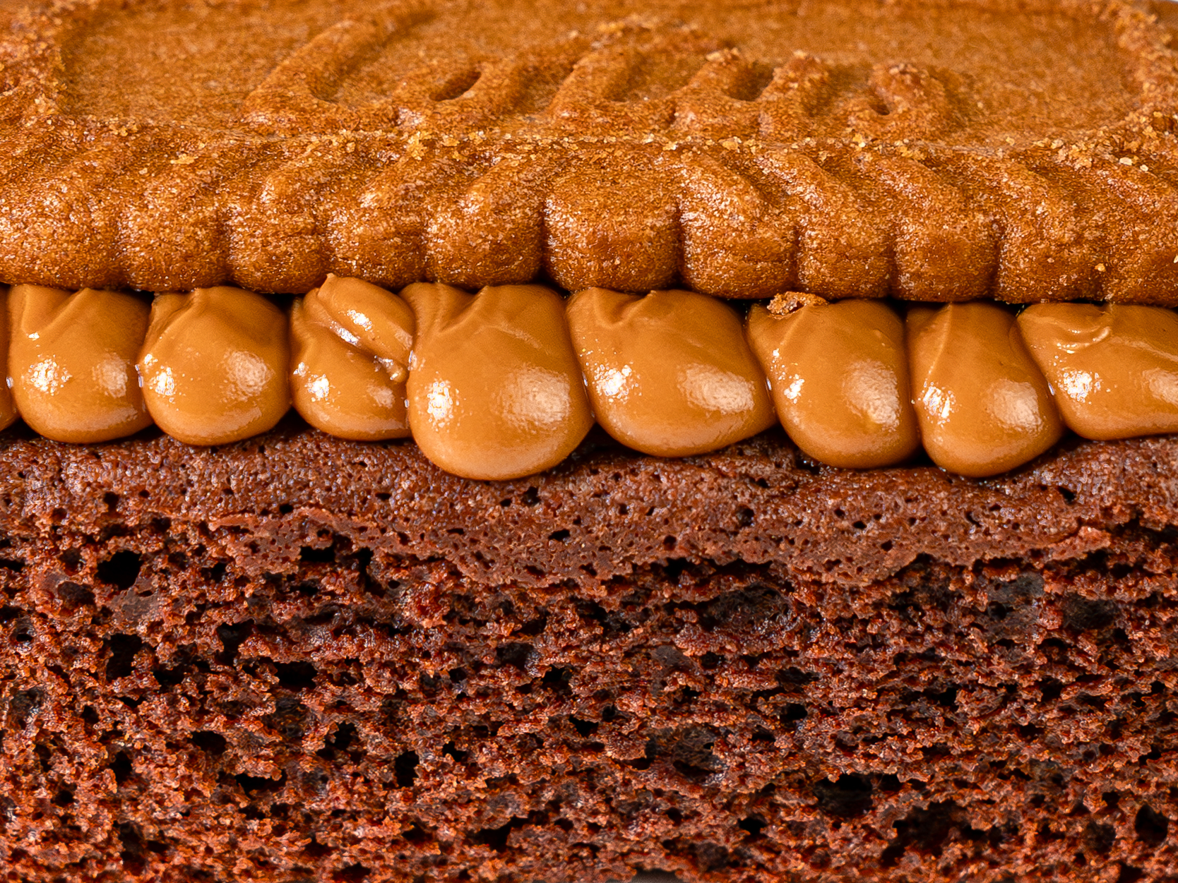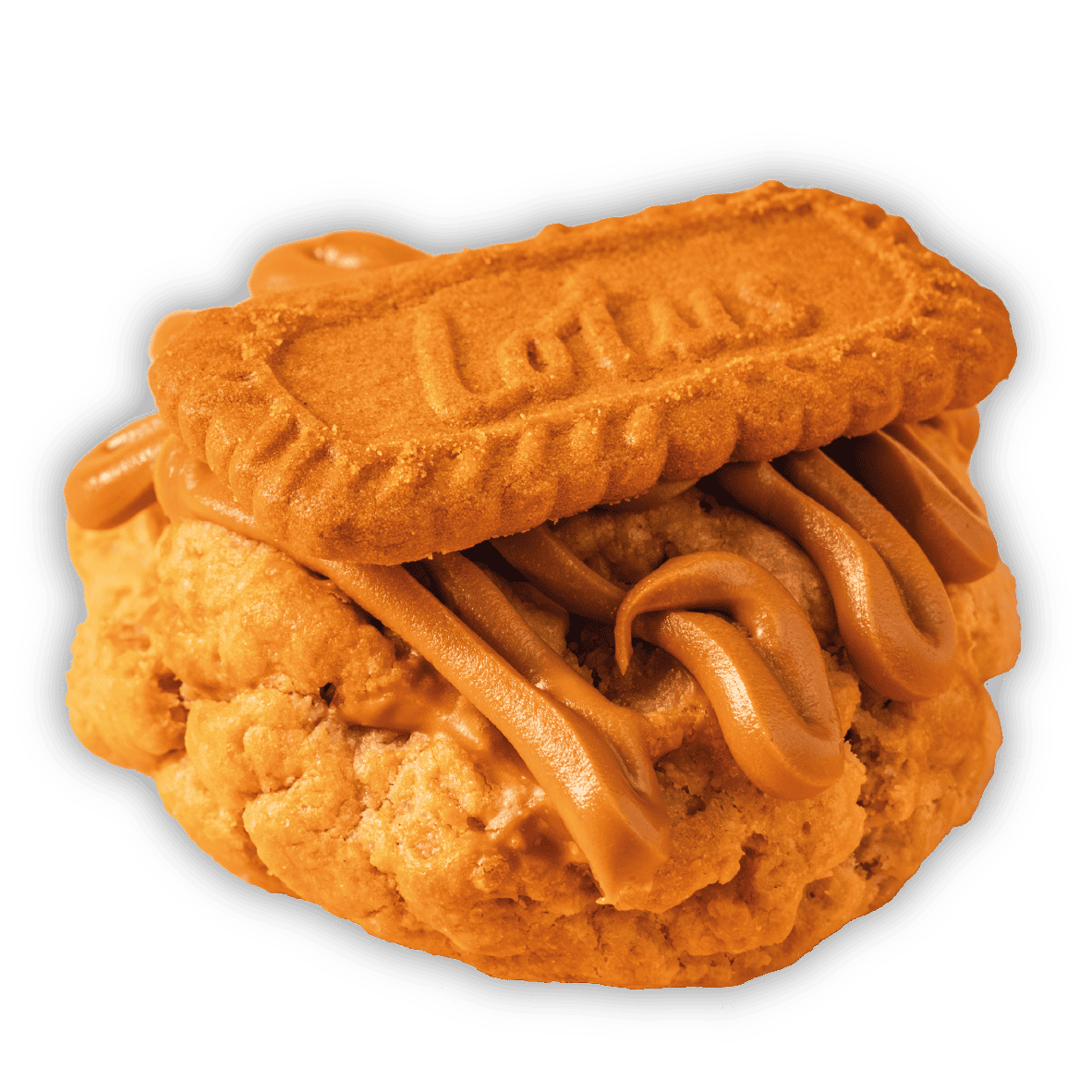 Recién horneado, suave... coronado con crema de Lotus y trozos de galleta.